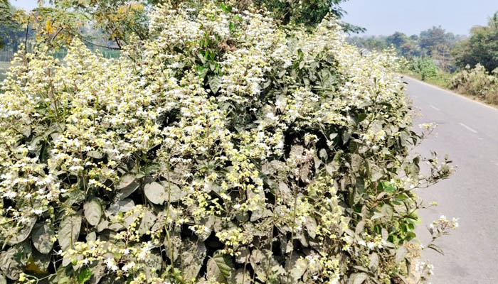 মতলব উত্তরে বেড়ীবাঁধ সড়কে অযত্নে ফোটা ভাঁট ফুলের সৌন্দর্য মুগ্ধ করছে পথচারীদের