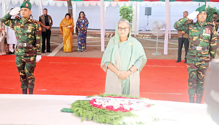টুঙ্গিপাড়ায় বঙ্গবন্ধুর সমাধিতে প্রধানমন্ত্রী শেখ হাসিনার শ্রদ্ধা