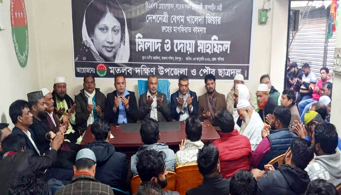 মতলব দক্ষিণে ছাত্রদলের আয়োজনে বেগম খালেদা জিয়ার মাগফিরাত কামনায় দোয়া