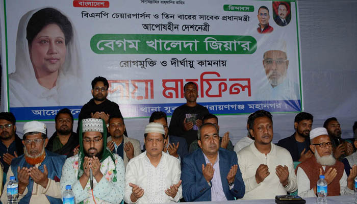 সিদ্ধিরগঞ্জ প্রতিনিধি: বিএনপির চেয়ারপার্সন সাবেক প্রধানমন্ত্রী দেশনেত্রী বেগম খালেদা জিয়ার আশু রোগমুক্তি ও সুস্থতা কামনায় সিদ্ধিগঞ্জের ৯নং ওয়ার্ড যুবদলের উদ্যোগে