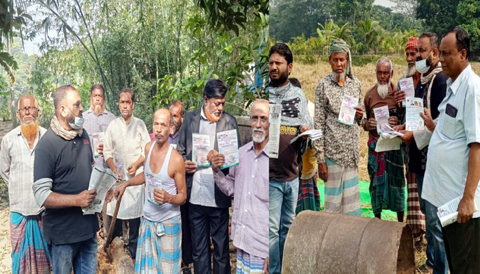 বিষ্ণুপুরে ধানের শীষে ভোট চেয়ে লিফলেট বিতরণ করেন বিএনপি নেতা আক্তার হোসেন