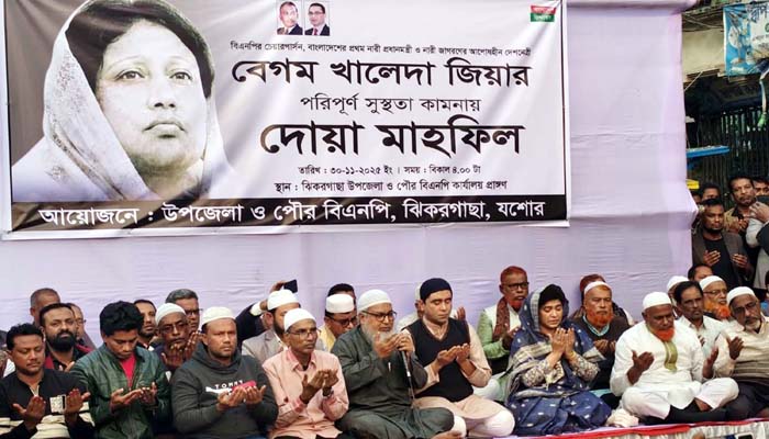 ঝিকরগাছায় খালেদা জিয়ার পরিপূর্ণ সুস্থতা কামনায় উপজেলা ও পৌর বিএনপির দোয়া মাহফিল
