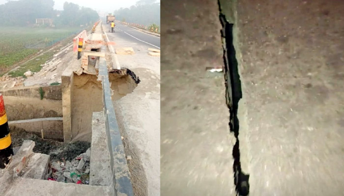 মমিনুল ইসলাম: মেঘনা-ধনাগোদা নদীর উপর নির্মিত চাঁদপুরের মতলব উত্তর ও দক্ষিণ উপজেলার সংযোগস্থল ‘মতলব সেতু’র মাঝখানে জয়েন্টে ভয়াবহ ফাটল দেখা