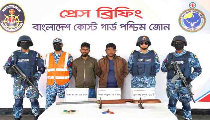 বাগেরহাটে কোস্ট গার্ডের অভিযানে অস্ত্র ও গোলাবারুদসহ করিম শরীফ বাহিনীর ২ সহযোগী আটক