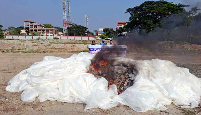 মেঘনায় মালবাহী ট্রলার থেকে ২ লাখ মিটার মশারী জাল জব্দ, আগুনে পুড়িয়ে বিনষ্ট