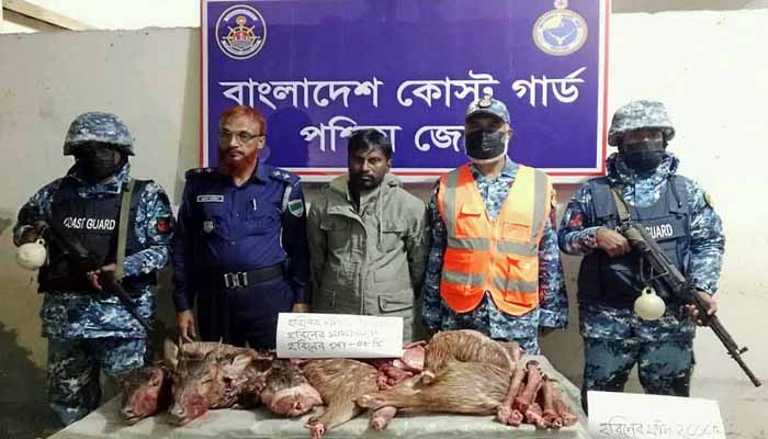 এনায়েত করিম রাজিব: মোংলায় কোস্ট গার্ড ও পুলিশের যৌথ অভিযানে ৩২ কেজি হরিণের মাংস, মাথা, পা ও ফাঁদসহ ১ শিকারি