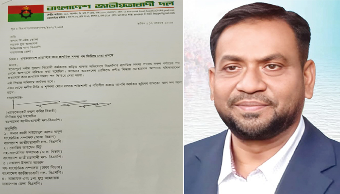 গাজীপুরে‘র সাবেক কাউন্সিলর নজরুল ইসলাম খান বিকি বিএনপিতে পুনর্বহাল