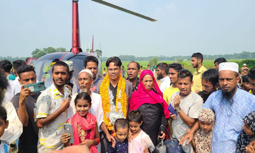 বাবা মায়ের স্বপ্ন পূরণে হেলিকপ্টারে বাড়ি ফিরলেন প্রবাসী আলম আনসারী