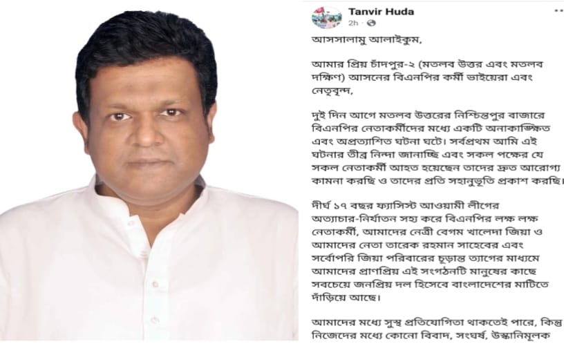 মতলব উত্তরে নিশ্চিন্তপুরে বিএনপি নেতাকর্মীদের সংঘর্ষ নিয়ে মুখ খুললেন তানভীর হুদা
